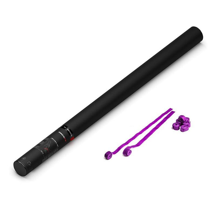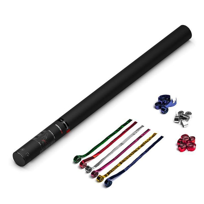 MAGICFX 80CM Handheld Streamer Cannons are the perfect way to brighten up any party, event or show. Powered by a pressurised cartridge, streamers are fired into the air and then gracefully floats down towards the crowd.