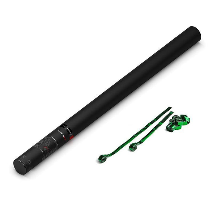 MAGICFX 80CM Handheld Streamer Cannons are the perfect way to brighten up any party, event or show. Powered by a pressurised cartridge, metallic streamers are fired into the air and then gracefully floats down towards the crowd.