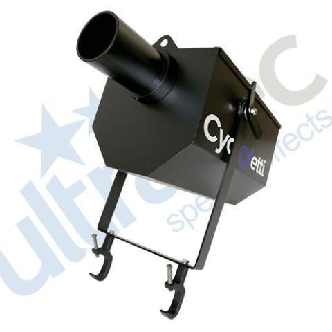 The CYCLOFETTI uses 18lbs of Co2 per minute @ 700 PSI to propel 4-5lbs of confetti into the air. With the Adjustable Bracket this unit can be located in the lighting rig, on the floor, or wherever it is best suited for the application.